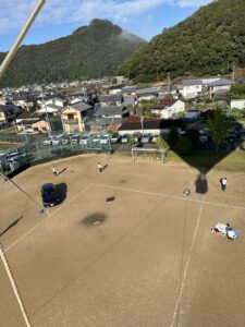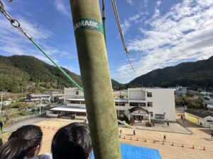 と開催中交わされた、バスケットを押さえるお手伝いの役場の方とのお話です。